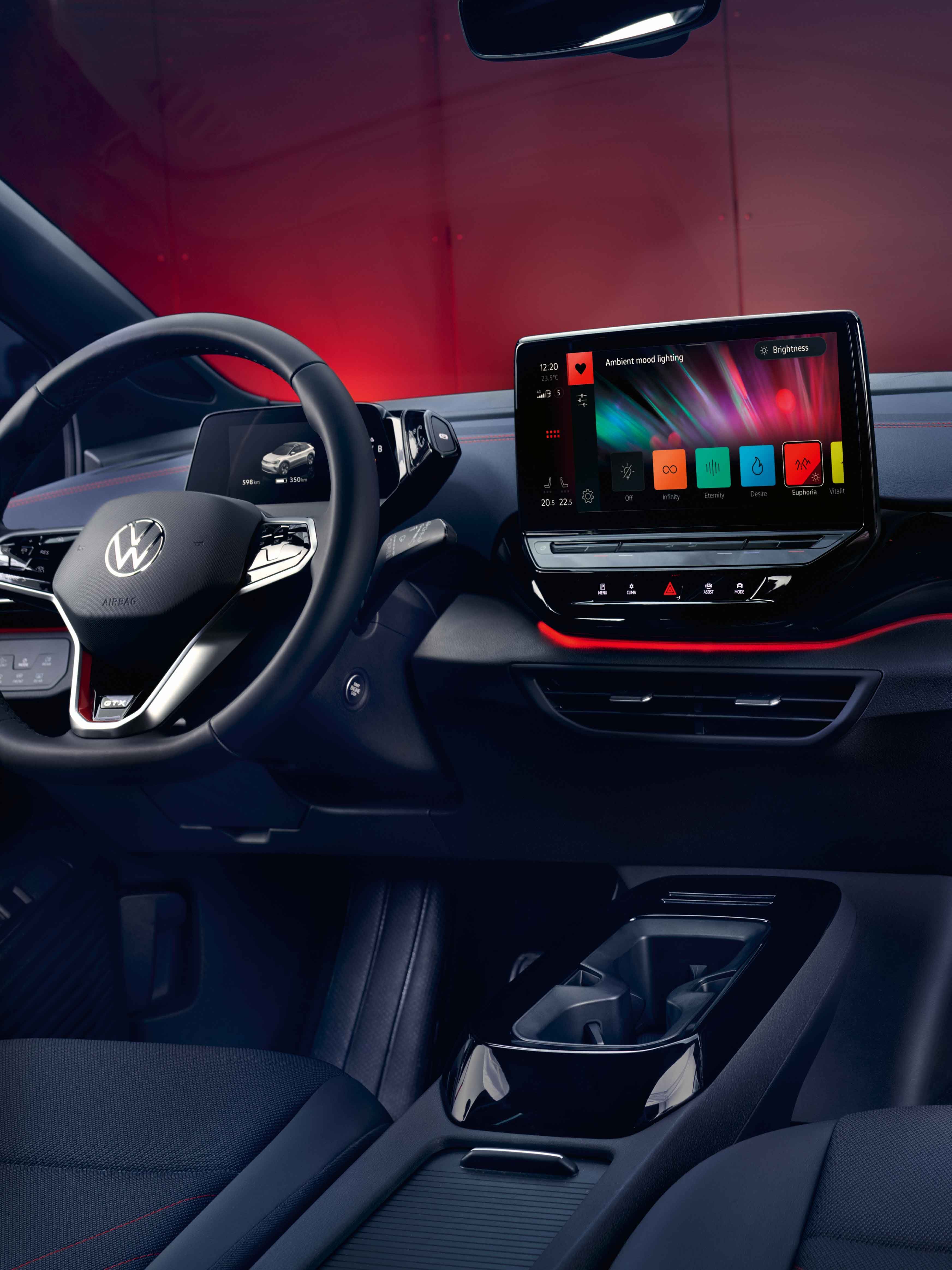 Svoje sanjsko vozilo lahko konfigurirate po svojih željah in potrebah. V prvem koraku izberite linijo opreme, barvo in platišča. V drugem koraku lahko svoje izbrano vozilo ID.4 GTX opremite z ustrezno notranjostjo, asistenčnimi sistemi in dodatno opremo.