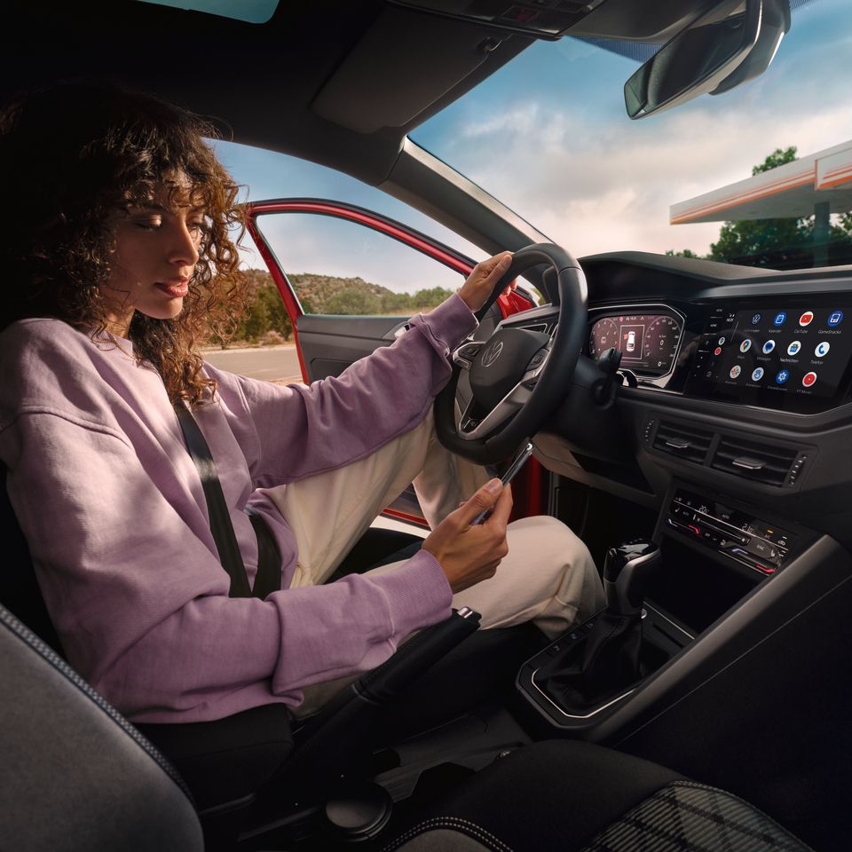 Volkswagnove povezljivostne rešitve prinašajo več udobja in dodatne možnosti za razvedrilo. Internetna povezava, ki je vzpostavljena med vozilom Taigo in vašim pametnim telefonom, vam pomaga, da na cilj prispete bolj sproščeni - le voziti morate še vedno sami.